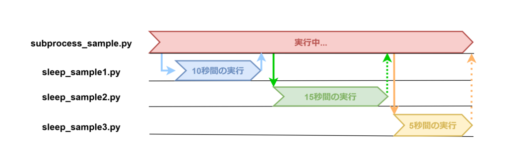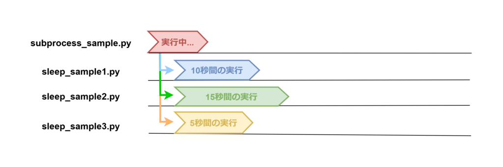 Popenは並列なので一番長いsample_sleep2.pyの15秒となり、大幅に速度が変わります